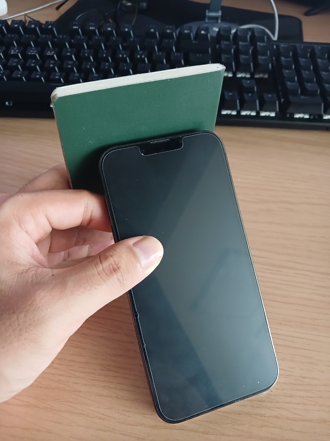 4. 마지막 단계인 전자여권 인식입니다. 핸드폰 케이스와 여권케이스를 제거해 주시고 여권 뒷면 중앙 부분을 아이폰 후면 상단 카메라 부분에 갖다 대주세요. 위아래로 조금씩 움직이시면 스캔이 완료됩니다.